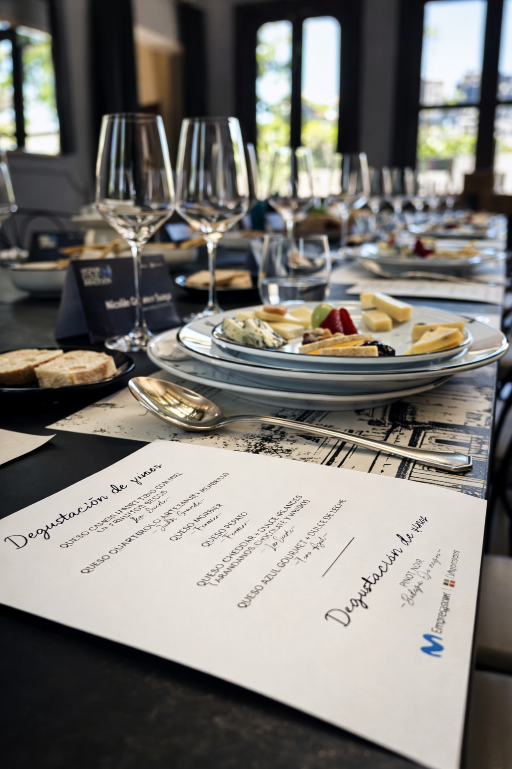 Cada detalle está pensado para generar un momento único: desde la presentación estética hasta la selección de bebidas que acompañan la degustación, vinos, y sus maridajes dulces y otros.