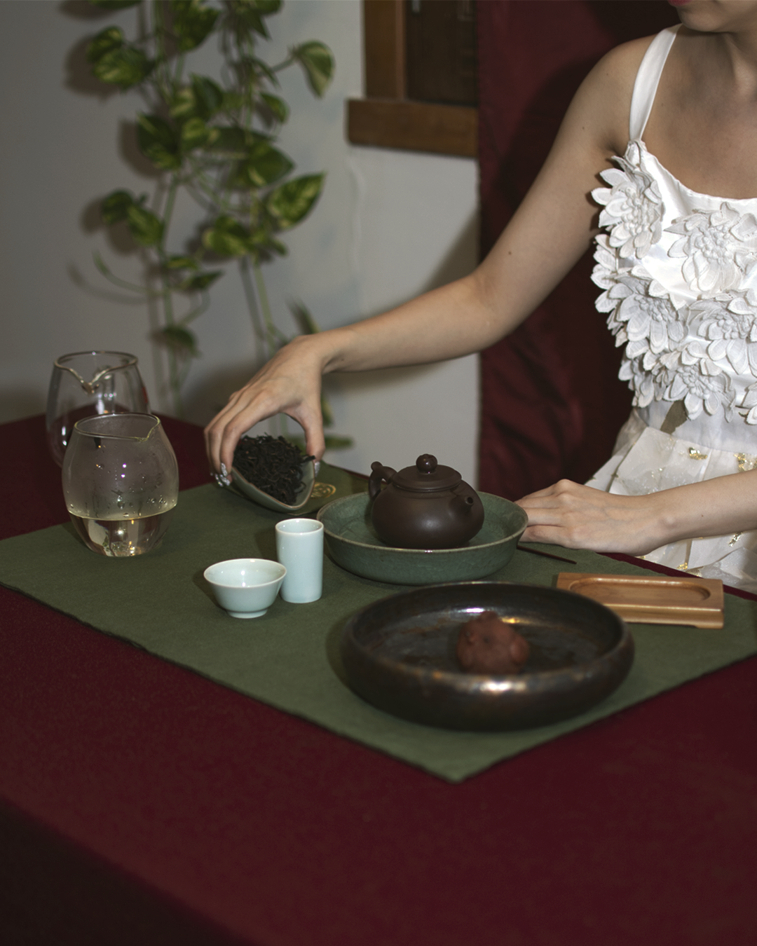 Se trata de una ceremonia íntima y contemplativa que suele describirse como una meditación en movimiento y en silencio, mientras se disfruta de té de alta gama.