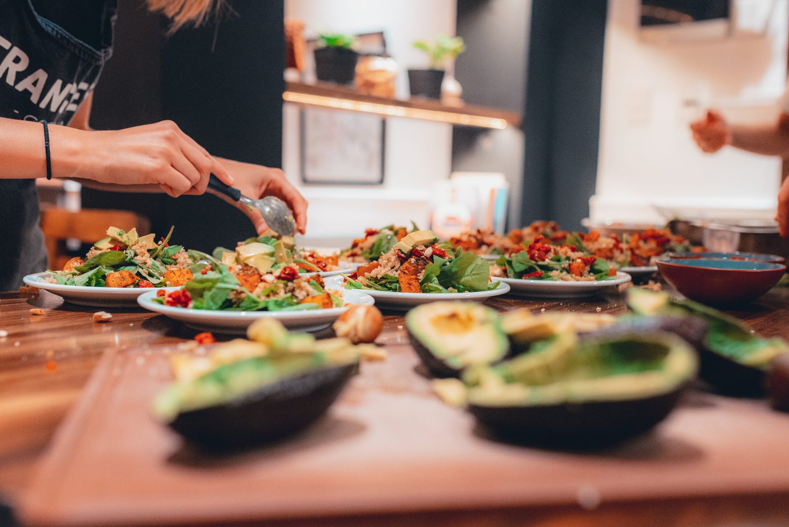 Una vez finalizadas las preparaciones, se emplata todo lo cocinado y el grupo comparte un almuerzo o cena con sus propias creaciones.