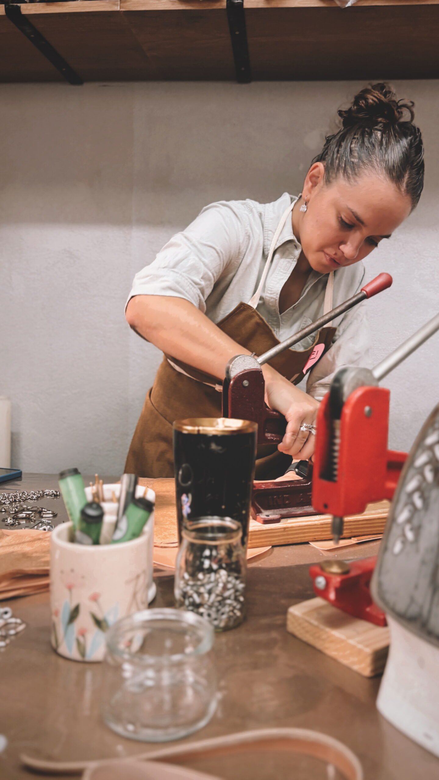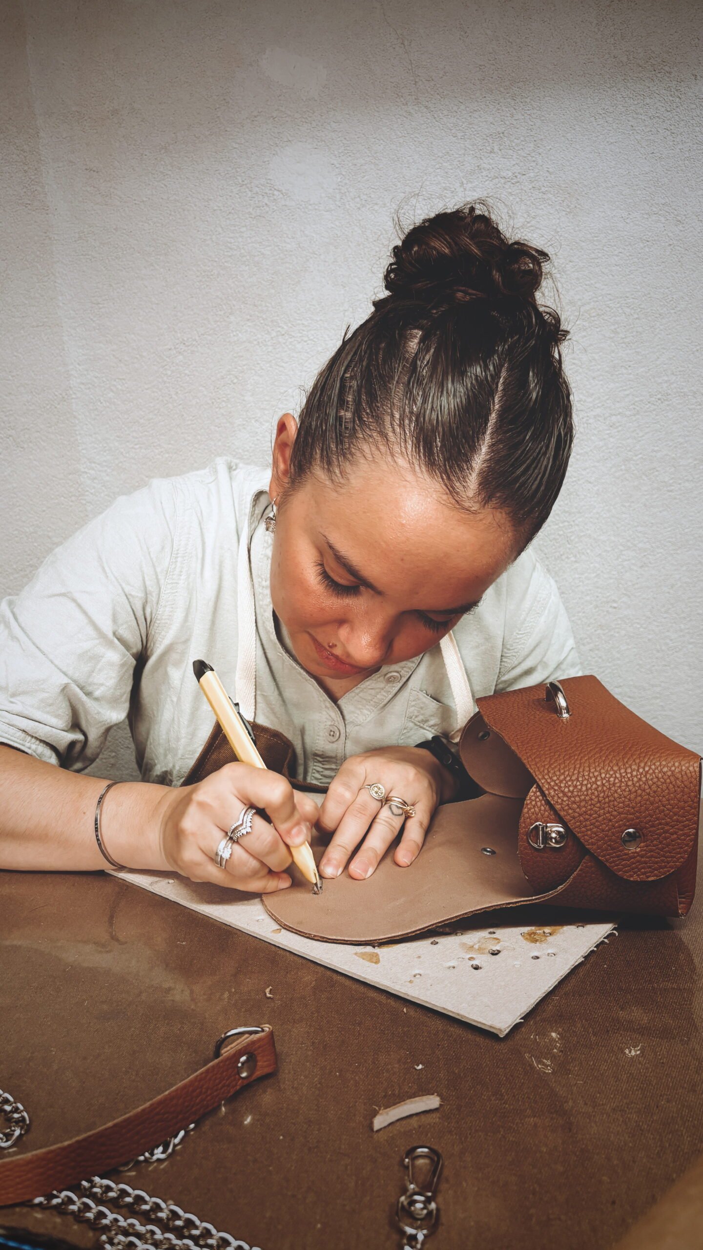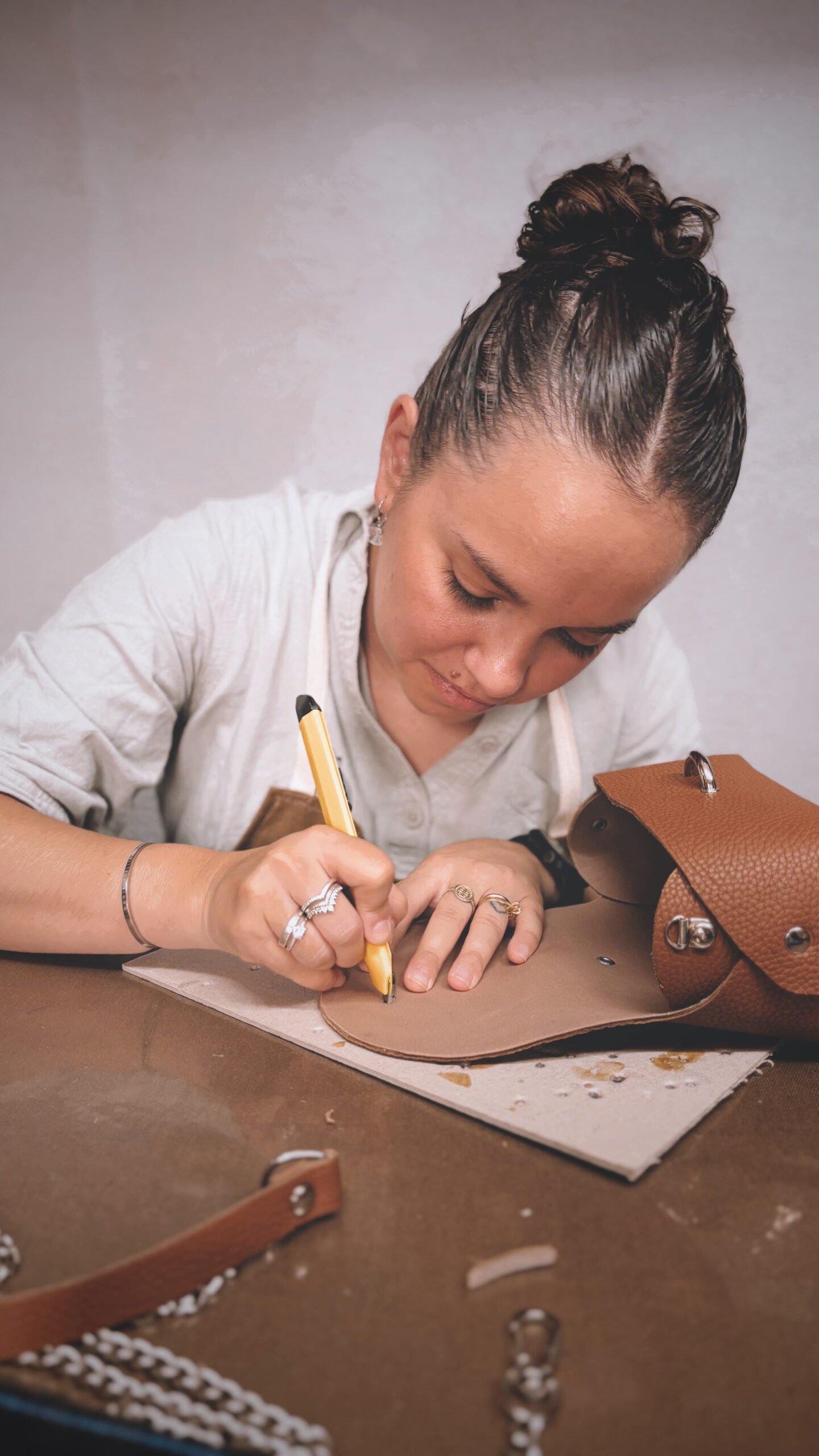 Una experiencia creativa para aprender conceptos básicos de marroquinería y construir desde cero una mini bandolera de cuero.