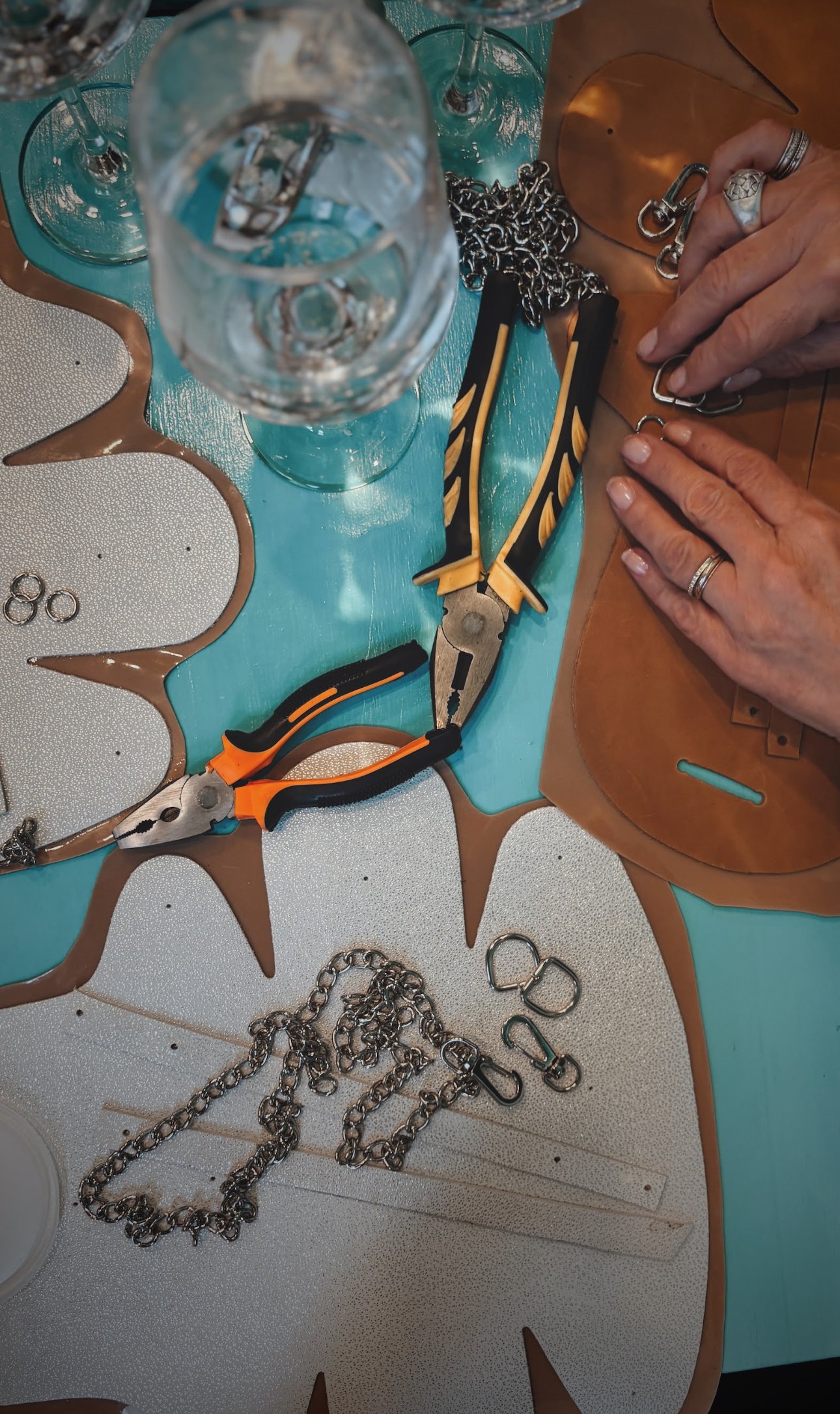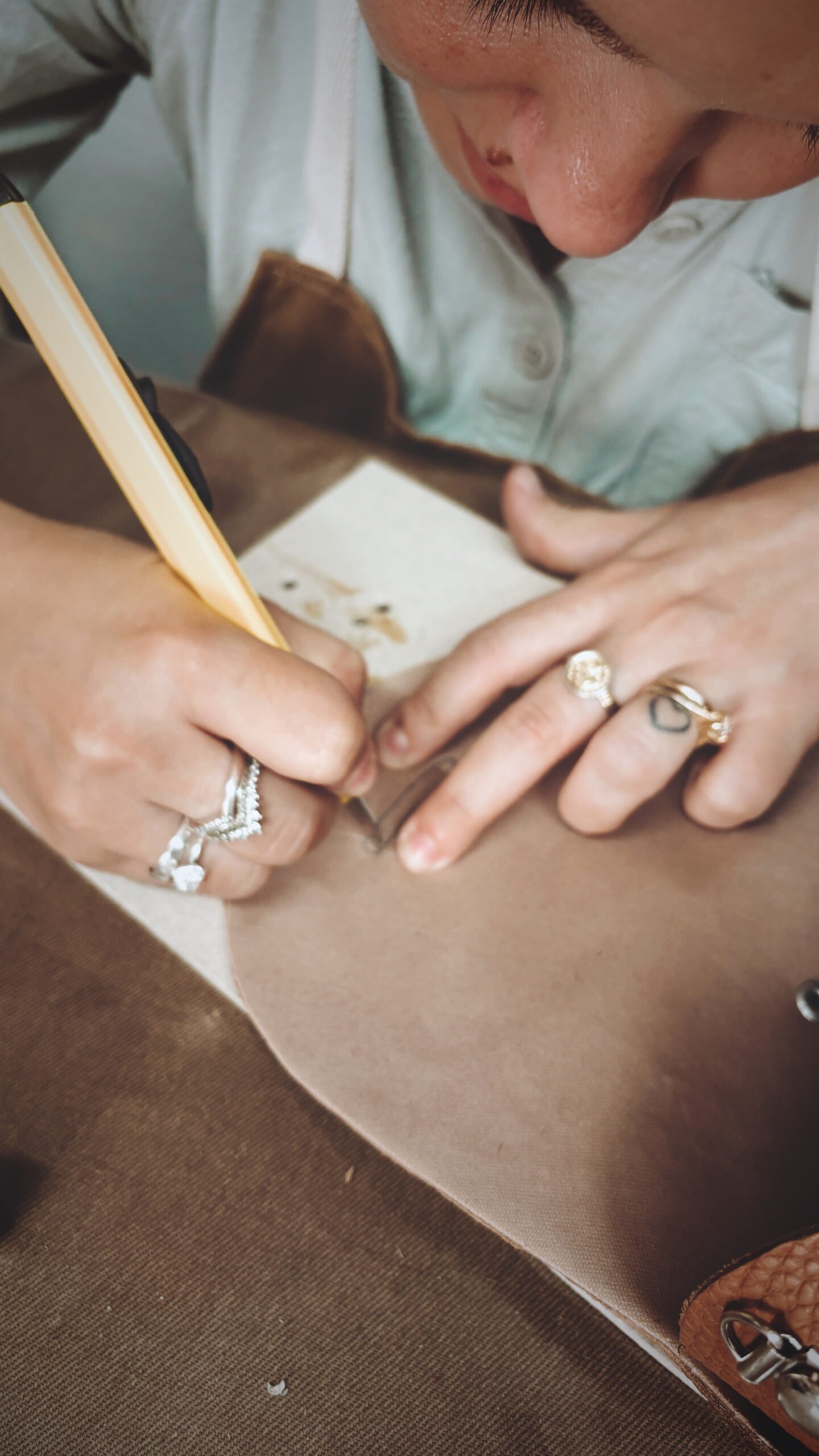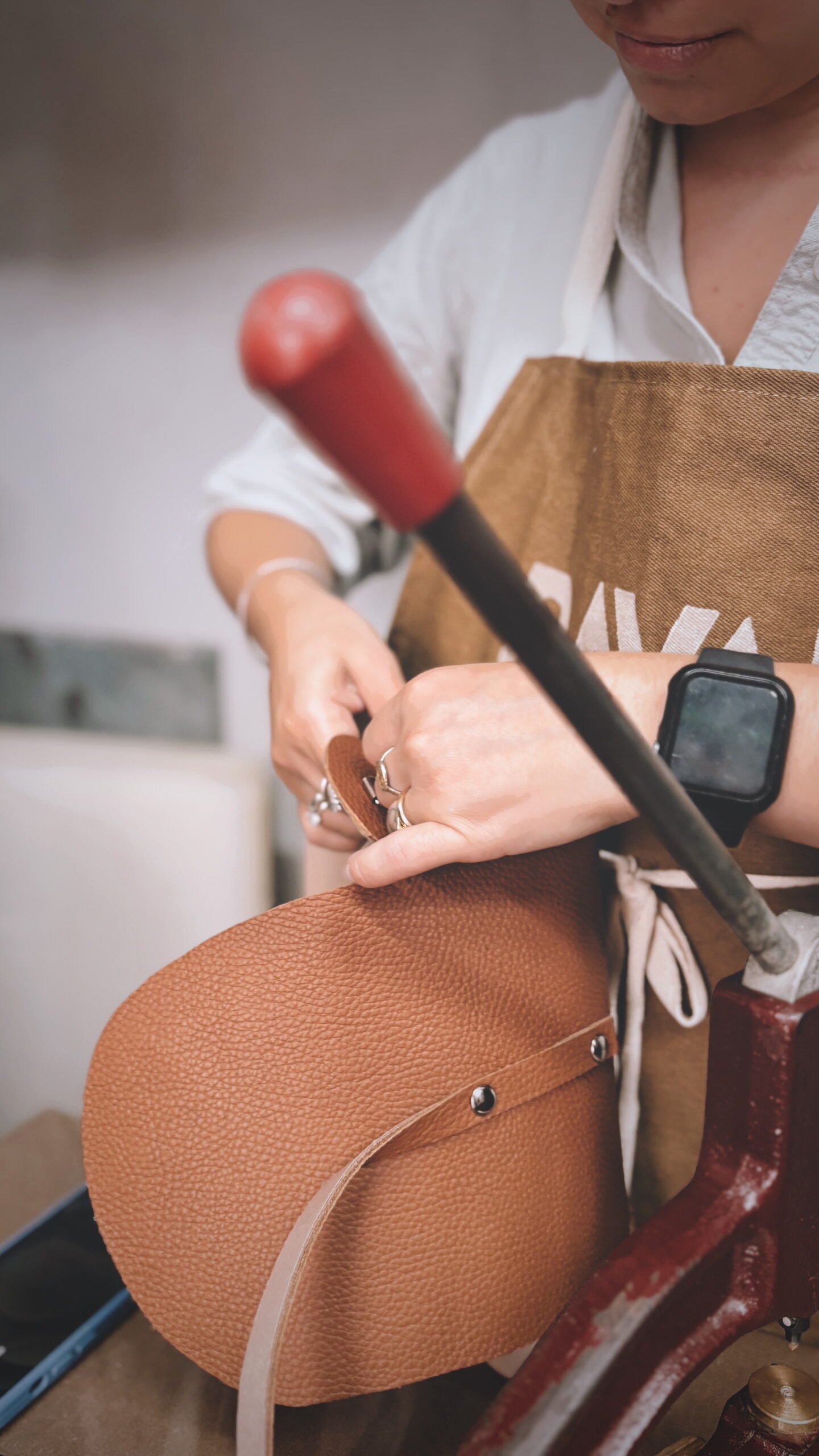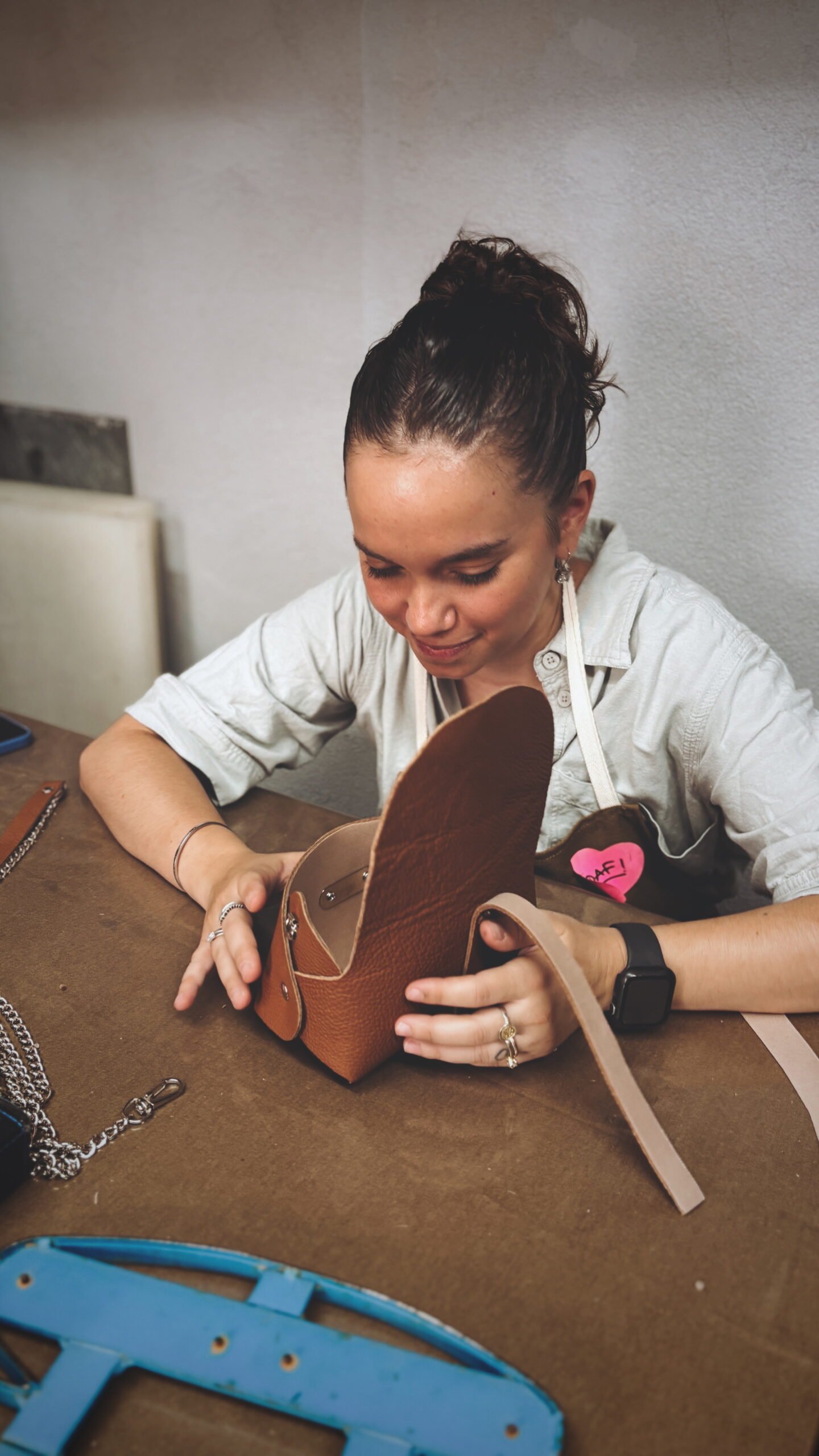 Una experiencia creativa para aprender conceptos básicos de marroquinería y construir desde cero una mini bandolera de cuero.
